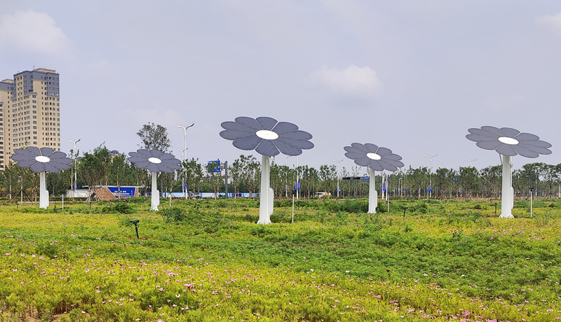 在廊坊的會展廣場,五朵“永不凋零”的太陽花向陽而生。它們是會呼吸的藝術品,以光影勾勒城市的輪廓;它們是沉默的能源守護者,將陽光轉化為動能;當星夜來臨,它們又化作溫柔的光之島嶼,照亮每一位行人的歸途。這,就是未來城市的綠色詩意。